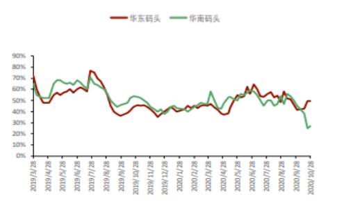库存方面,近期南方地区台风频发,受飓风影响,从美湾装货的一部分船只到港或也有推迟,华东库存环比下降0.3%,预计本周船期到货持平的条件下,在台风的作用下,华南库存或有所下降,整体港口库存处于中性偏低水平。