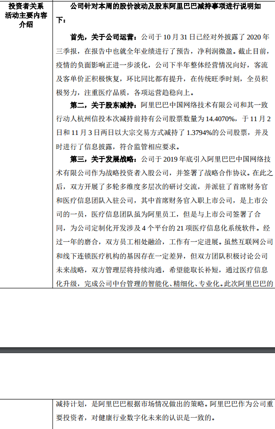 原标题:美年健康回应“阿里减持”:双方管理层将持续沟通