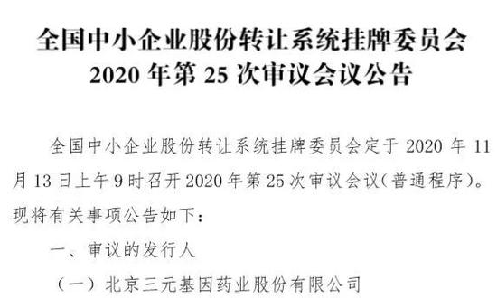 根据安排,新三板挂牌委将于11月13日召开2020年第25次会议,审议三元基因的新三板公开发行申请。10月以来,精选层审议维持“一周一审”的节奏。