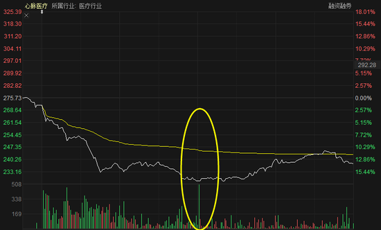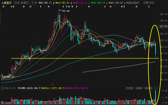 《每日经济新闻》记者注意到,创业板指的弱势,与领跌的医疗板块下挫近3%密切相关。其中,心脉医疗(688016.SH)成为跌幅冠军,盘中最高跌超17%,放量创出了近半年的新低。