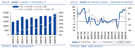 一季度受疫情影响,机械下游需求大幅下滑,随着疫情的缓解,国内经济逐步修复,顺周期板块景气向上——重卡和挖掘机销量同比增速9月分别回升至80.2%和64.8%,工程机械未来需求有望延续;另外随着制造业景气的回升,企业自动化需求也大幅提升,工业机器人销售增速持续上行,9月增速达到51.4%;另外,由于新能源板块的高景气度,光伏设备及锂电设备将维持高速增长。整体来看,继续看好机械设备板块未来的业绩增长。