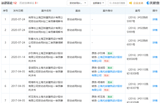 另据公开信息,2016年至今,尤安设计累计存在12起劳动合同纠纷。