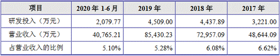 同期,同行业可比上市公司研发费用率平均值分别为4.21%、4.17%、4.44%和4.60%。