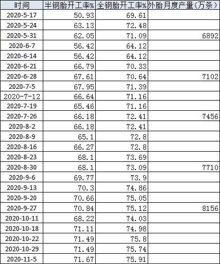 原标题:11月份外销订单暂充足,轮胎开工率维持高位
