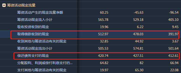 荣盛发展前三季度货币资金余额256.21亿元,比年初减少约44亿元;存货余额却达到约1853.6亿元,比年初新增价值约253亿元;一年到期有息负债为581.75亿元。货币资金远少于一年到期的有息负债,短期偿债压力较大。偿还债务支付现金420.74亿元,同比增幅38.07%,借款收到现金512.97亿元,同比增长39.26%,融资规模继续扩大。