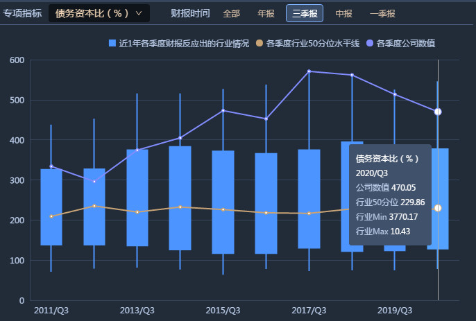 在衡量长期偿债能力方面,可以用债务资本比。可以观察到荣盛集团的债务资本比处于行业高位,长期偿债能力弱,但是近三年比率逐年下滑,或是在改善长期偿债水平。