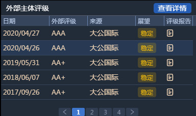 今年,大公国际对荣盛的评级为AAA,展望为稳定。大公国际认为,公司总有息债务规模较大,短期有息债务不断增长,财务费用增长较快,存在一定短期偿债压力和融资成本上升压力。