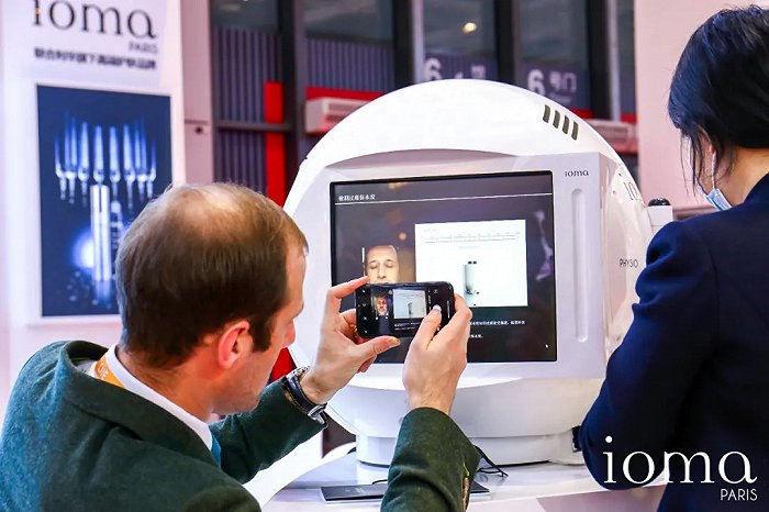 据负责人介绍,ioma测试仪通过皮肤自然状态、皮肤纹路状态、红血丝、斑点、细菌、眼周6张图像和2个芯片来测量皮肤的7个主要特征,并通过10年时间累积了三百万次皮肤测试样本,生成40257×2种个性护肤方案。