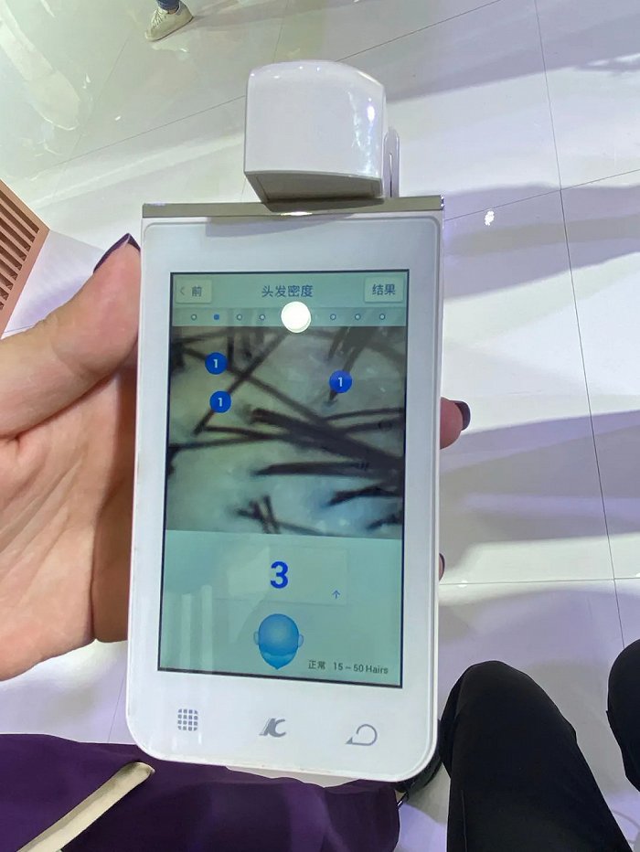 “通过对比正常的头发密度指标,你的发质在正常范围内,但相对细软......”循着人流密集的展馆,这已经是记者参展体验的第二台肌肤测试仪了。这台头皮健康测试仪由爱茉莉太平洋旗下高端洗护品牌吕研发,也是在此次进博会上首度现身。