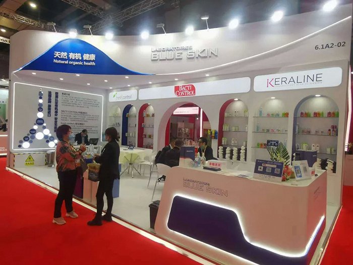 《化妆品财经在线》记者就注意到,一家刚刚进入中国市场不久的法国企业blue skin,产品广泛覆盖头部护理、身体清洁和私密护理领域。据现场负责人介绍,旗下洗手液品牌Bacti Control拜蔻迪,选用玉米萃取可食用酒精,并由法国专业调香师调香,自上市来已累计售出22亿瓶。
