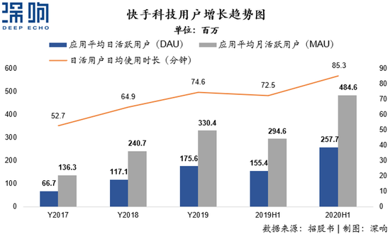 在用户基数不断扩大的背景下,快手用户的平均使用时长同样在持续提升。截至今年上半年,快手日活用户日均使用时长为85.3分钟,同比提升了17.7%。