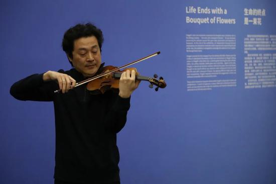 走到被花束作品包围的长廊尽头,著名艺术家吕思清奏响了小提琴。他手中的琴,造于1699年,比夏加尔还“年长”188岁。丝路中心这座艺术殿堂,等来了名副其实的名琴、名家、名画。