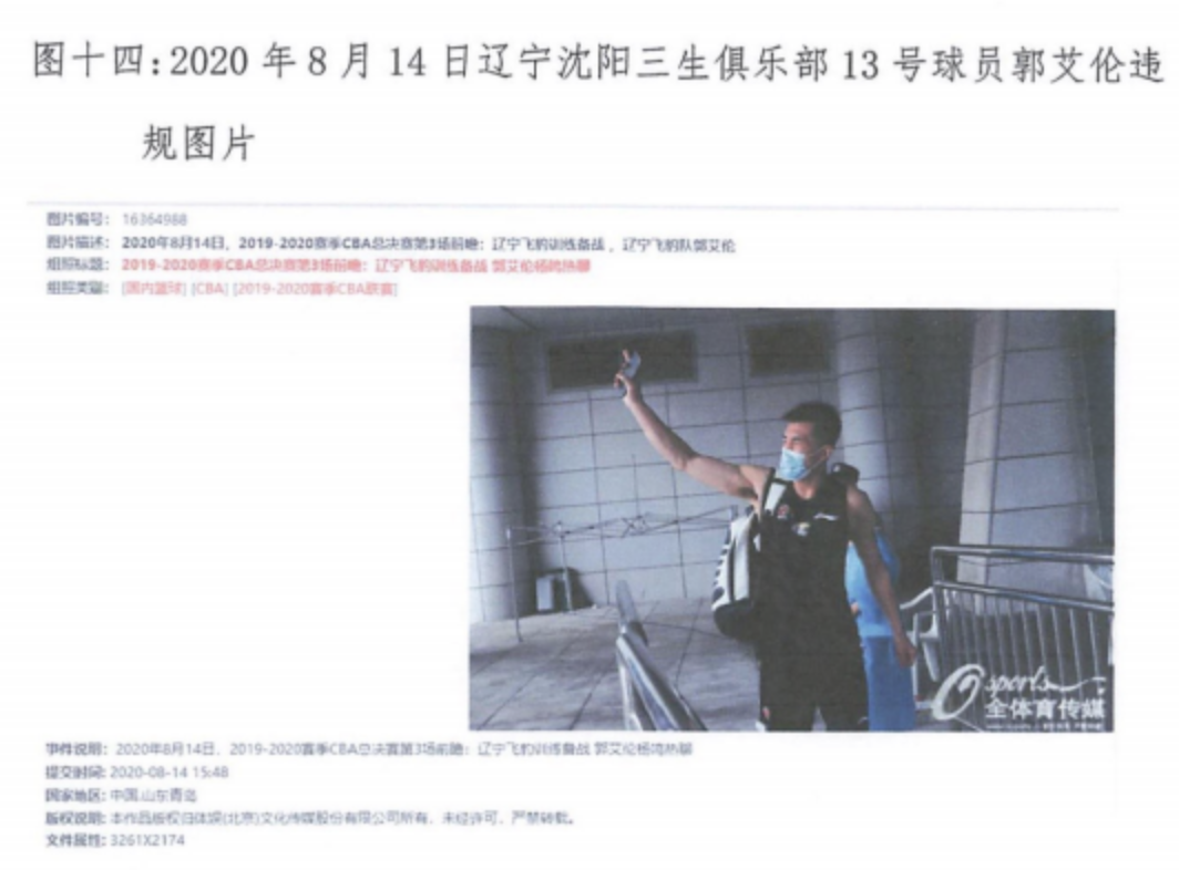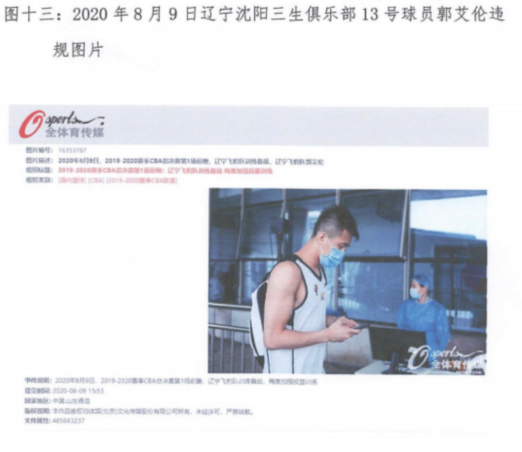 据新浪体育,内部处罚文件中,CBA联盟贴出的违规图片解释了罚款理由。