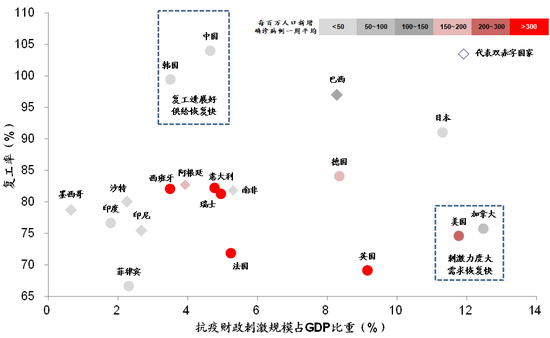 iii.不过,一定阶段内不均衡修复仍将延续,主要体现在新兴市场。相比发达国家,部分欠发达新兴市场疫苗的应用要明显偏慢,因此那些疫情依然严重干扰其复工进展和融入全球贸易程度、同时又是双赤字和外债较高的市场可能仍将相对落后。