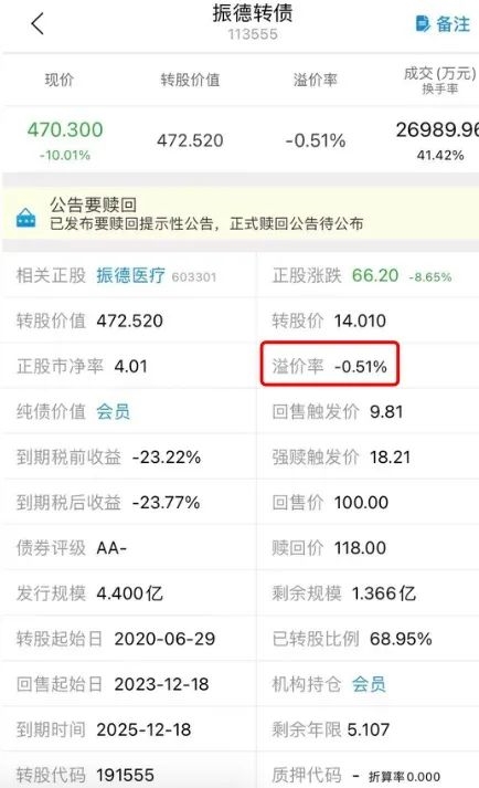按照14.01元/股的转股价格计算,振德转债的转股溢价率约1%,依然存在小幅溢价。