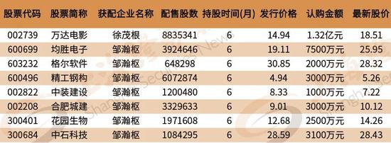 多年前,邹瀚枢在定增市场也是“常客”,但在2015年上半年参与莱茵生物、乐凯胶片的定增项目之后,再未出手。二级市场上,邹瀚枢“金盆洗手”的年份定格在2016年,直到今年才重出江湖。