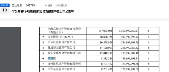 11月9日晚间,万达电影、均胜电子不约而同发布了非公开发行股票结果情况报告,在机构云集的认购对象名单中,分别出现了徐茂根、邹瀚枢两位牛散,各自出资1.32亿元、7500万元成了公司重要股东。