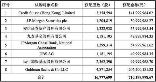 荣盛石化10月9日披露上市公告书显示,其定增过程中共有192名投资者向承销商报送了意向函。其中包含摩根士丹利、摩根大通、美林国际3家外国机构。最终成功获配的19名投资者中,仅摩根士丹利一家外国机构获配,金额为2.29亿元。
