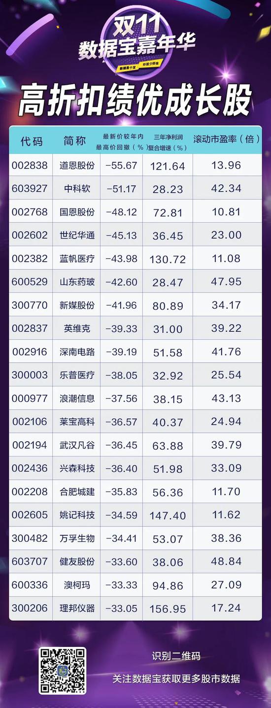 不少股民感慨,每次行情启动总是猝不及防,待自己反应过来时已“错失几个亿”。不过,牛股上涨途中也有喘气的时机,数据宝按照“股价打折”和“业绩稳健”两条主线筛选出部分高折扣绩优成长股,为您奉上优选好货。