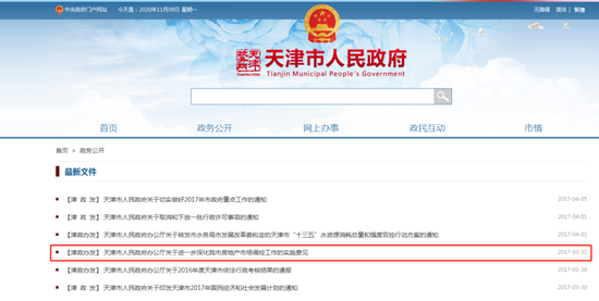 2017年3月31日,天津市人民政府发布了《关于进一步深化我市房地产市场调控工作的实施意见》。