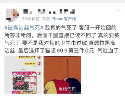 在官网发生这种低级错误后,高洁丝的的客服也没有做出及时的回应,网友称客服都是自动回复,来来回回就那几句话,并没有解决问题。