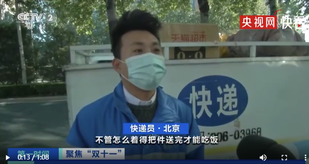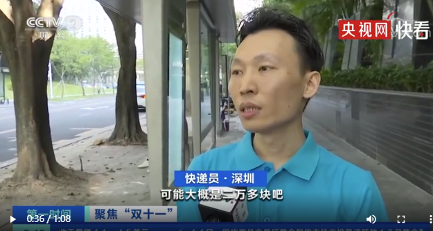 有快递小哥表示,双十一期间收入可能大概是2万多块。