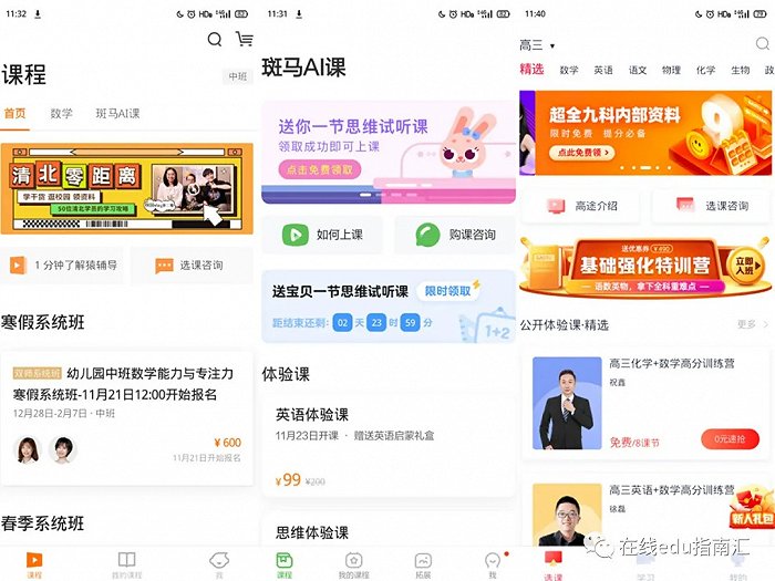 猿辅导网课app、斑马AI app、跟谁学旗下高途学堂app,均无额外的双十一营销活动