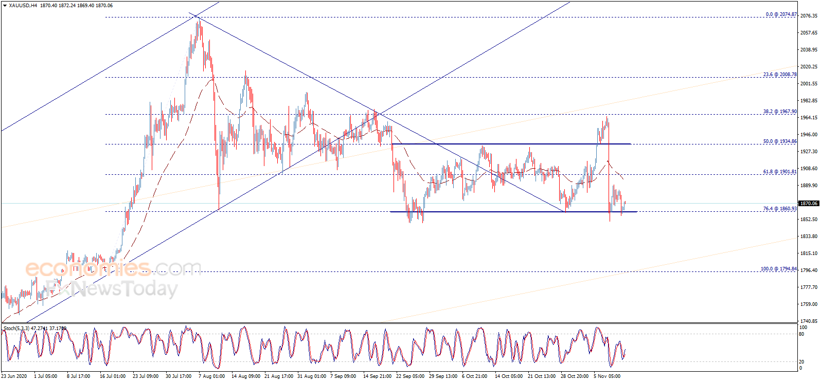 根据Economies.com,只要维持在1860.90美元/盎司水平上方,金价未来一段时间可能仍有大幅上涨的空间。