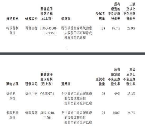 1,上交所要求君实生物结合临床试验数据,说明公司产品特瑞普利单克隆抗体注射液(拓益)“所有不良发生率”的具体含义,补充披露该产品的临床试验进展情况,以及结合自身产品及市场中同类产品的相关实验数据,说明该产品的安全性和有效性。作者兽爷在公号文中称,该药“在技术评审的文件中,既没有完成肝损害患者试验、也没有完成肾损害患者试验,其所有不良反应发生率为97.7%。有15.6%的患者因为不良反应而永久停药。”