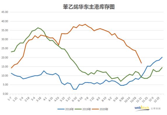 最后,从需求端来看,今年受新冠疫情影响,我国经济运行呈现先抑后扬的走势。三季度开始商品市场加速回暖,苯乙烯终端产品需求迎来爆发。其中汽车整车及终端家电需求陡增,特别是家电订单增长相当显著:因疫情期间居家生活增多,家电的使用频率明显提高,“宅经济”的爆发刺激国内家电市场迎来“阳春”。此外,家电国外订单增长也很明显。据公开统计数据显示,今年上半年,我国电炒锅、面包机、榨汁机等出口分别增长62.9%、34.7%、12.1%。中国在恢复产能利用率后,出口方面爬坡非常明显,包括跨境电商、很多制造业,出口端明确增长。随着需求端的火爆逐步向上传导,苯乙烯货源变得相当抢手。不过随着“双十一”电商节落幕,终端产品需求存在下滑预期,此前下游厂商已对高价货源产生抵触情绪,一旦苯乙烯提货速度放缓,库存则很容易出现拐点。