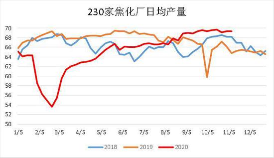 全国230家独立焦企产能利用率76.99%,环比上周减少0.61%,同比增加3.56%,焦化开工微微降,主要是山西地区部分焦化厂推迟至11月份关停。230家焦企焦炭日均产量68.88万吨,环比减少0.54万。上周产量虽然有所下滑,但是整体供应端表现较为平稳,且前期进行的烘炉,预计有一部分会在十一月份出焦。