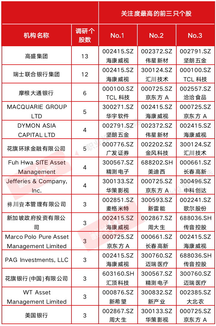 高毅、景林、重阳、高盛都来了,四季度明星机构5000次调研都去了哪些公司