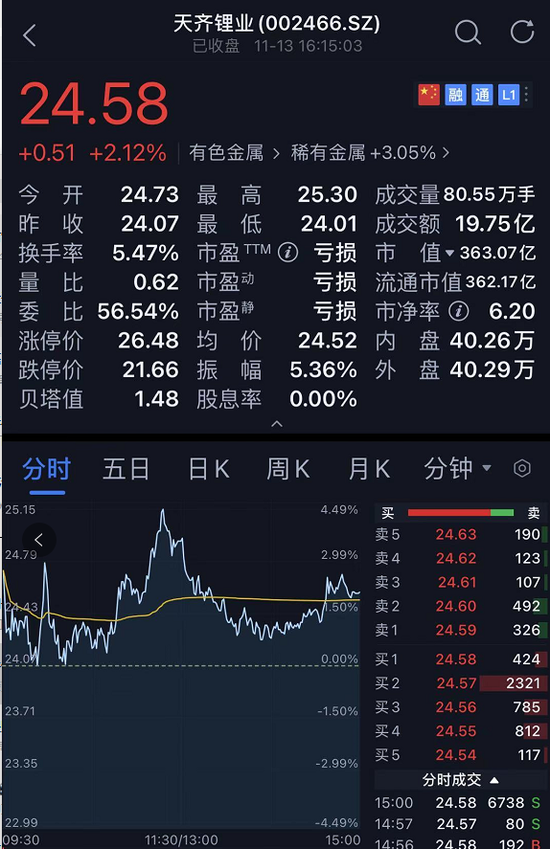 资料显示,天齐锂业是中国锂业巨头,主要从事锂资源开采、销售和锂盐产品生产制造。