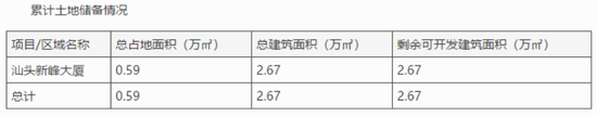 多年没有买地的深深房,土地储备已经不多。截至今年上半年,累计土地储备只有0.59万平方米,剩余可开发建筑面积只有汕头新峰大厦的2.67万平方米。