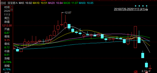 从市场表现来看,11月9日,深深房股价还涨停报收11.89元/股,但第二天11月10日,公司股价便开始持续下跌,截至11月13日,仅4天的时间,公司股价跌幅为25%。