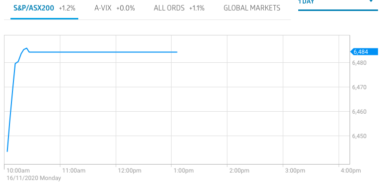 暂停交易前,澳洲标普200已涨近1.3%,触及6487.30点,创下近9个月来新高,银行,矿业和生物技术公司在内的许多蓝筹股飙涨。