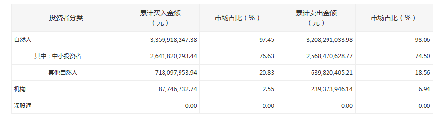 深交所披露的交易数据显示,ST金刚在11月4日至11月16日跌幅严重异常期间,获自然人买入33.6亿元,占比97.45%;其中,中小投资者累计买入26.41亿元,占比76.63%。机构投资者买入占比2.55%。