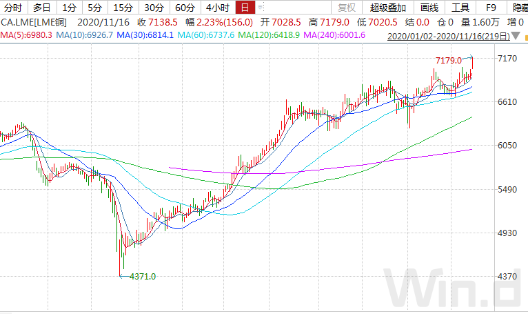 美国大选之后,市场对于不确定性担忧减低,资金重新返回风险资产,支撑了价格回升,市场预期,新一届政府将会采取规模庞大的经济刺激措施,未来可能会投入超过2万亿美元用于基础建设,包括交通运输、水利等方面有明确计划,这无疑会对铜需求产生较大的支撑,有利于铜价的上行。