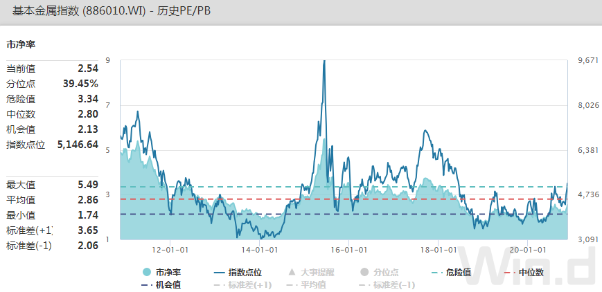 估值方面,截至11月16日,Wind基本金属板块市净率为2.44倍,低于近十年的2.69倍的平均水平。无论是横向比较,还是纵向比较,有色金属板块都具备估值优势。