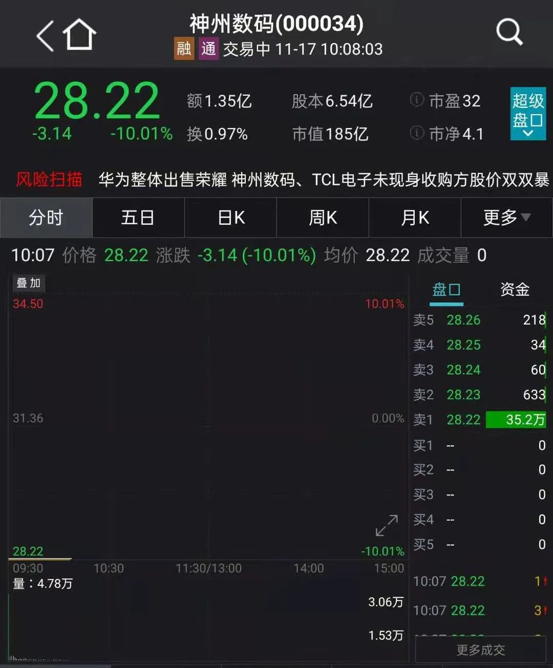 此前多次传出的收购方神州数码未出现在发布联合声明的企业名单中。今日早盘,神州数码跌停。