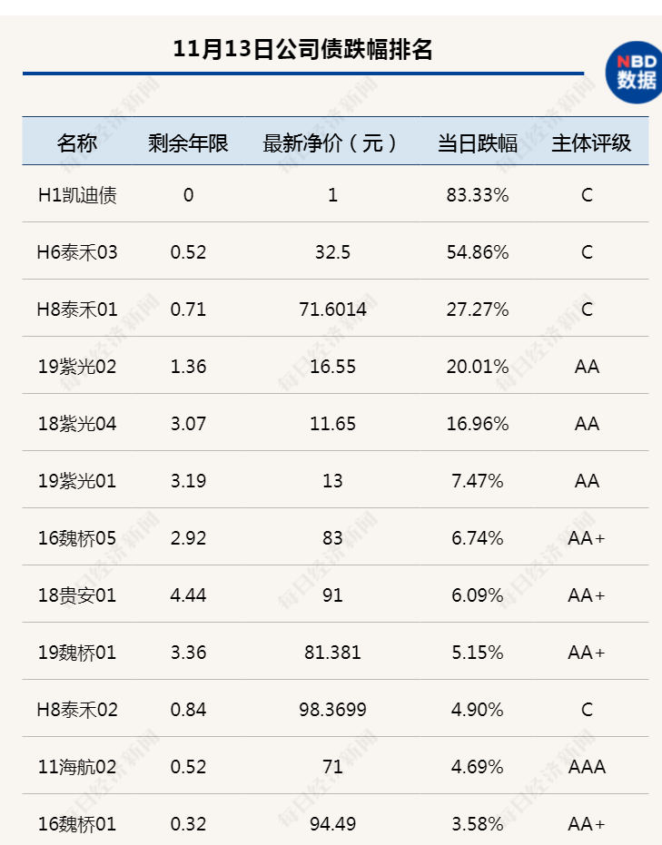 11月11日,山东魏桥铝电有限公司(以下简称“魏桥铝电”)所发债券“16魏桥05”和“19魏桥01”遭联合资信下调评级,由“AAA”降至“AA+”,依照相关规定,将被调整投资者适当性安排,由“仅限合格投资者参与交易”调整为“仅限合格机构投资者参与交易”。