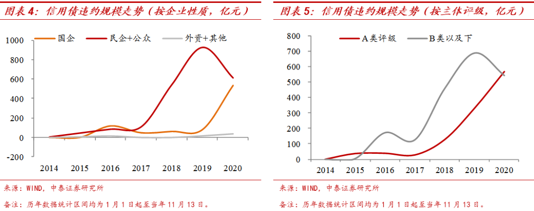1、违约风险只是被“延后”了。一般来讲,违约风险和基本面往往是高度挂钩的。但疫情影响下,今年上半年经济大幅下滑,违约风险反而没有集中释放,而在经济逐渐回暖的三季度,却出现了超市场预期的违约事件。主要原因或在于外部融资环境的变化,上半年货币信贷支持力度较大,企业可以借助大量的外部融资,来弥补现金流的短缺,而当下半年融资边际收紧的时候,过去被“掩盖”的违约风险反而就暴露出来了。