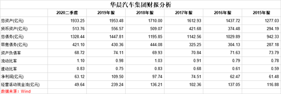 目前华晨汽车集团的债务高达1300亿。公司2020年债券半年报显示,总资产为1933.25亿元,总负债1328.44亿元,资产负债率68.72%。从期限结构看,流动负债占比达到77.28%,公司短期债务规模较大,流动比率1.1,速动比率0.83,存在短期集中偿债压力。