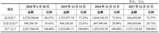 2017年至2020年6月30日,电气风电总资产分别为123.11亿元、145.23亿元、222.56亿元、282.75亿元,总负债分别为101.10亿元、123.74亿元、183.60亿元、242.66亿元。