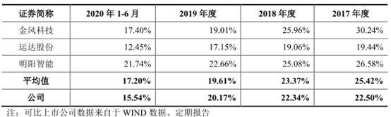 随着产业政策及行业竞争的影响,可比上市公司毛利率水平在报告期内均出现一定下滑,毛利率均值分别为25.42%、23.37%、19.61%、17.20%。