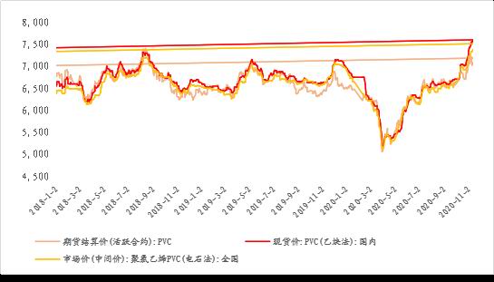 11月总体来看,电石法PVC:国内PVC生产企业出货情况较好,库存偏低,价格坚挺,PVC期货不断探高,利好现货市场,商家报盘走高,而后随着期货回落,市场报盘小幅松动。乙烯法PVC:国内乙烯法PVC受市场缺货以及外盘价格走强支撑,价格维持高位运行。华东PVC市场乙烯料价格主流8050-8250元/吨左右。