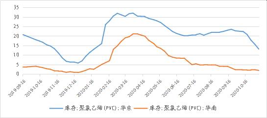 10月以来PVC现货价格开始走高,从生产企业方面来看,多数企业出货顺畅,预售单较多,华东乙烯法企业货源紧张,多封盘不报。市场上区域到货不均,社会库存偏低,商家挺价意向较高。下游对当前高价抵触,大型制品企业开工尚可,部分中小型企业利润薄弱下开工偏低,接单维持刚需。