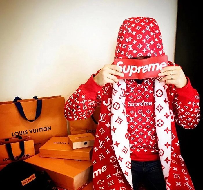 相对于前两者来说,万物皆可Supreme的可能性应该更高,其“社交活动”范围已经覆盖了方方面面,从食品、美妆、服饰再到奢侈品等等。如果说Supreme获得小众潮流群体的喜爱是靠酷、潮的品牌态度,那么其一步步走向品牌溢价的高峰,品牌联名则占据重要的一部分原因。