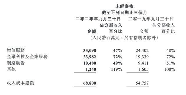 腾讯向to B业务转型时,外界会认为腾讯也要赚辛苦钱了,从财报来看确实如此,金融科技及企业服务业务成本/收入比例极高,但将广告业务和增值服务两项放在一起比较,两者的成本/收入比例是接近的,如广告业务能带来些惊喜,或许腾讯的钱赚得也没那么辛苦。