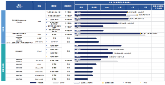 目前,和铂抗体平台已获得超过45个生物制药行业及学术界合作伙伴的高度认可,包括辉瑞(PFE)、信达生物(01801.HK)、百济神州(06160.HK)等等大型药企,产品管线已覆盖11种靶点,其中截至2020年6月30日已有六个项目进入临床阶段。